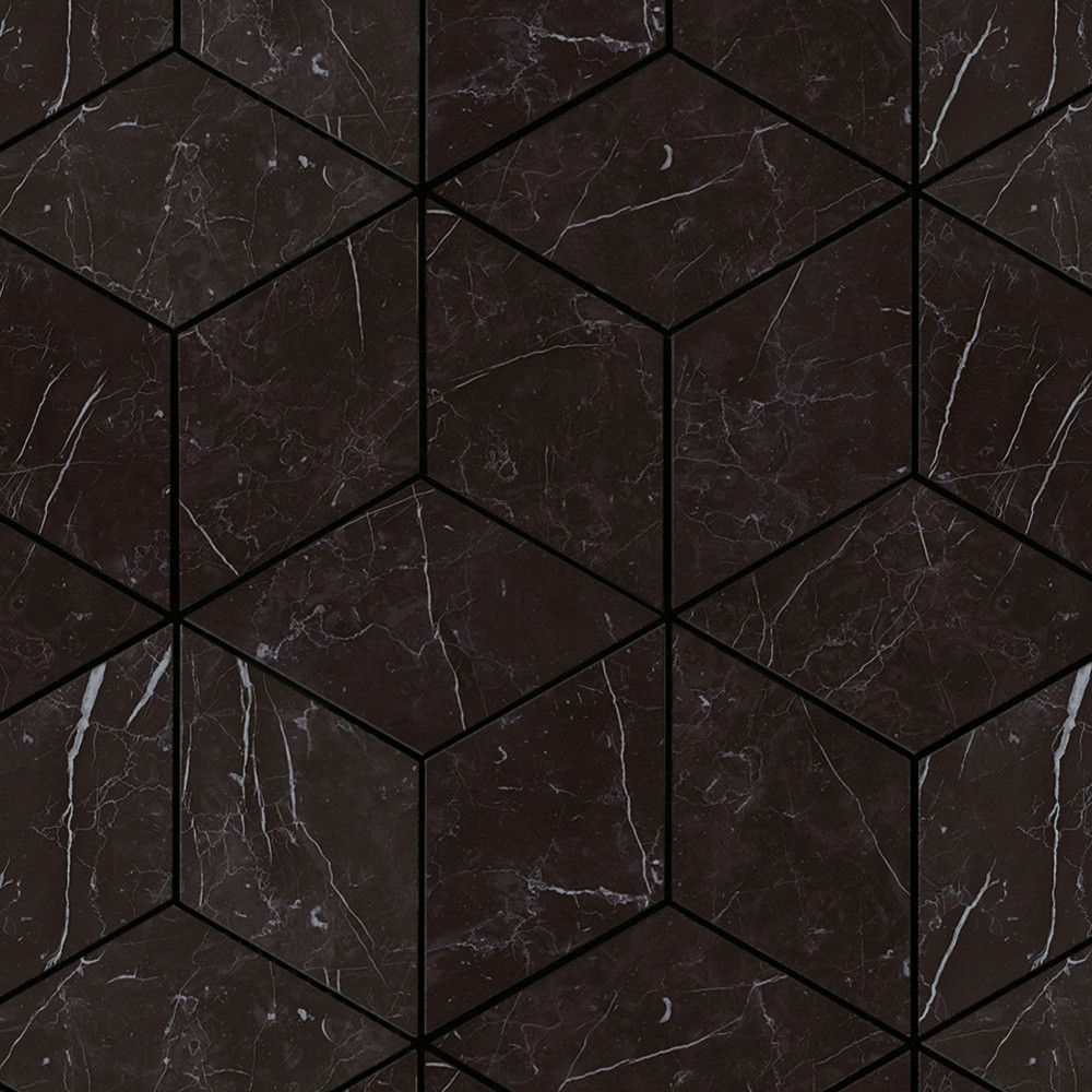 Marvel Nero Marquina Mosaico Esagono Lappato