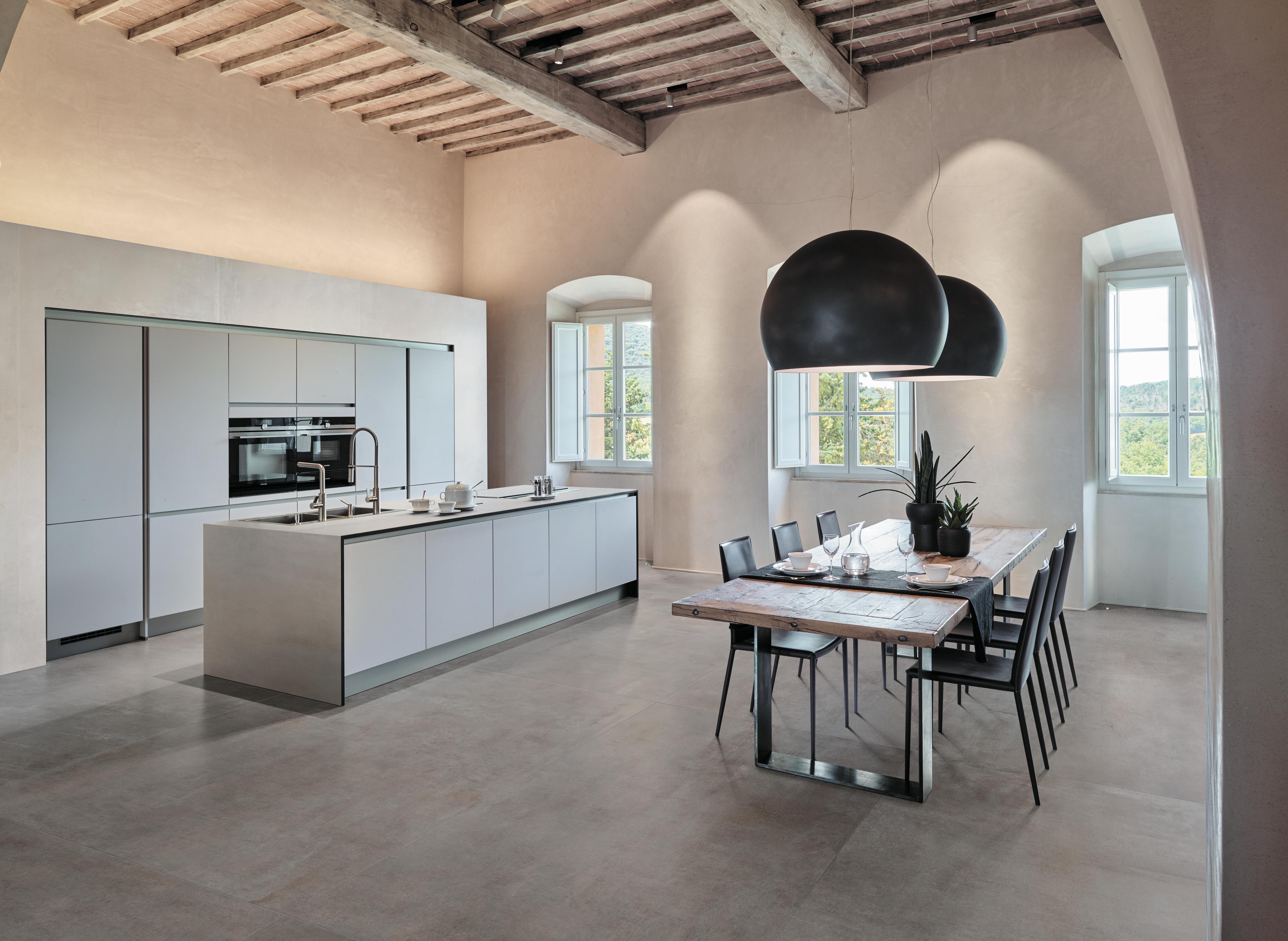 La belleza del gres porcelánico efecto hormigón de la colección Boost brinda contemporaneidad a la arquitectura sin distorsionar la autenticidad de los ambientes. Los tonos cálidos de la oxidación coexisten con los halos más fríos típicos del hormigón, en una superficie que destaca por su fuerte identidad. El gran formato de 120x278 cm con 6 mm de espesor para uso en pavimento y revestimiento abre nuevas posibilidades para el diseño de interiores.