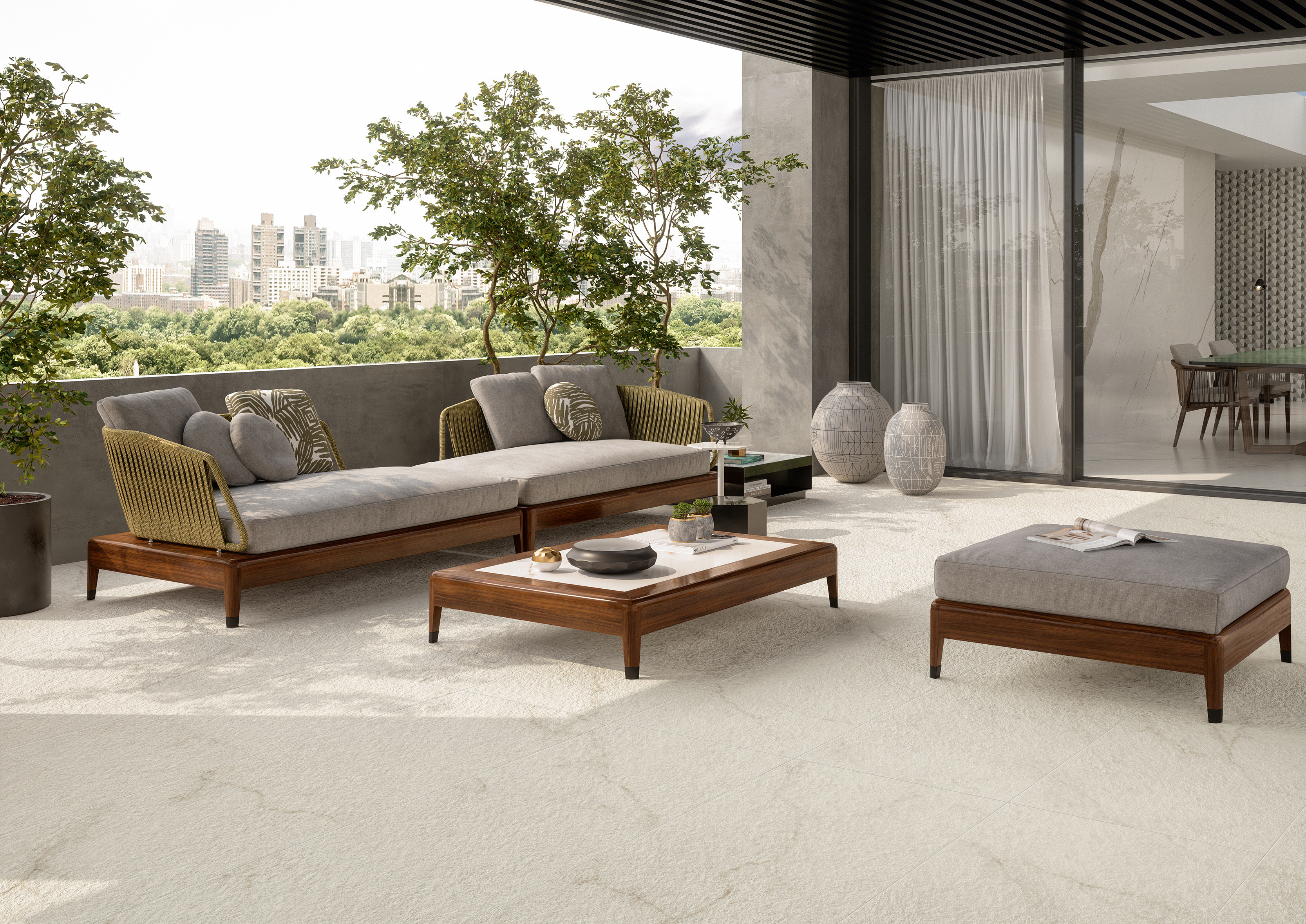 Un material sofisticado con corazón mineral que difumina las fronteras entre exterior e interior.