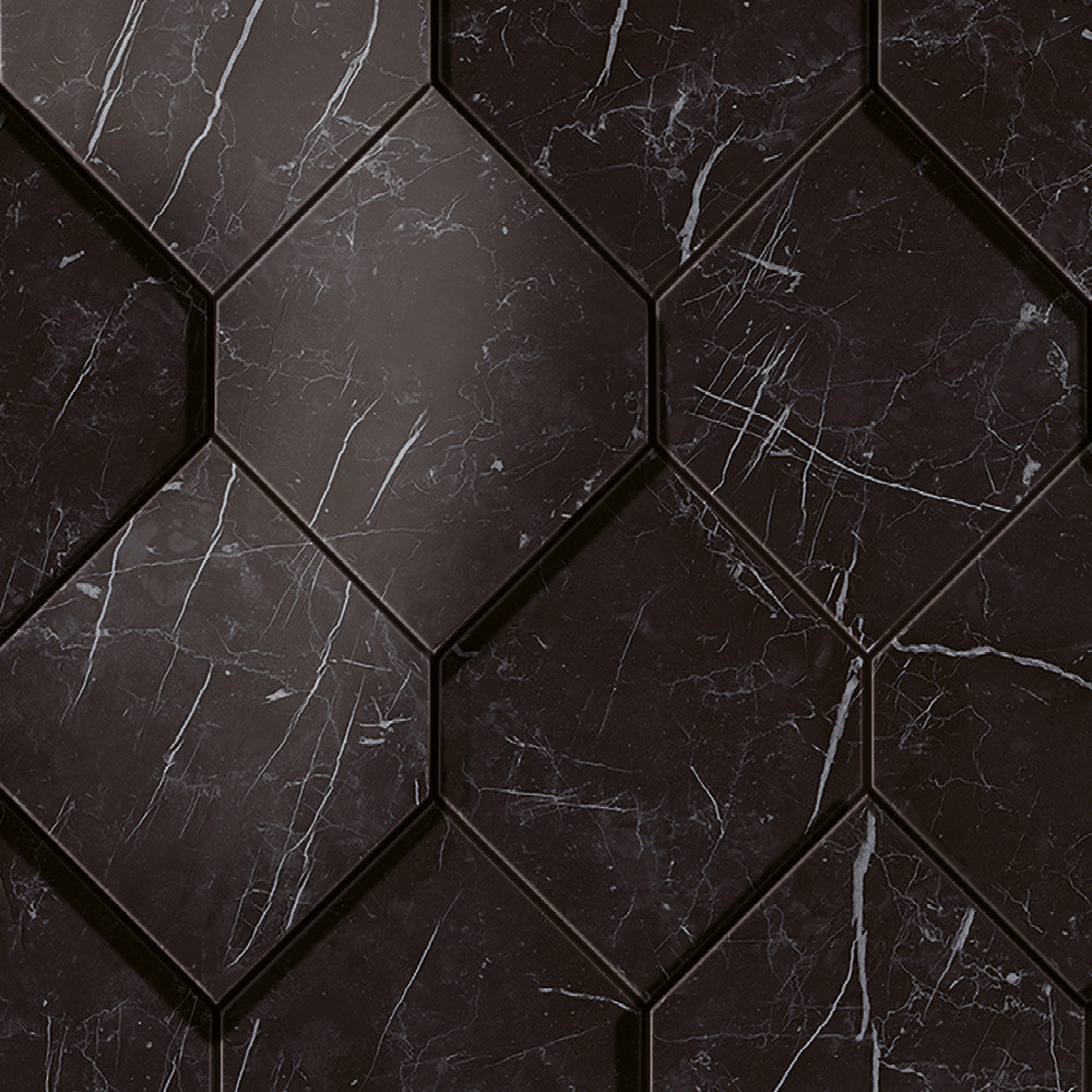 Marvel Nero Marquina Mosaico Esagono 3D